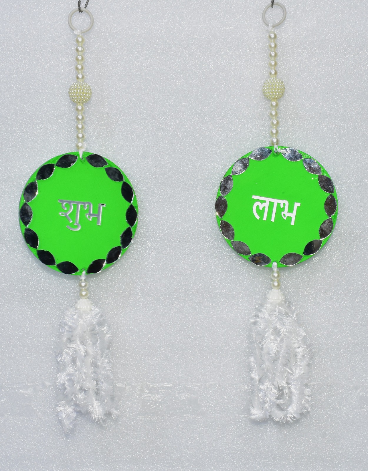 | Handcrafted Shubh Laabh – Blessings for Your Home | Bring positivity, prosperity, and festive vibes to your home with our beautifully handcrafted Shubh Laabh hangings. Perfect for Diwali, housewarming, or any special occasion, these decorative pieces symbolize good fortune and happiness. Add a traditional and elegant touch to your doors, walls, or pooja space, and invite blessings and positivity into your home with Shubh Laabh décor. |