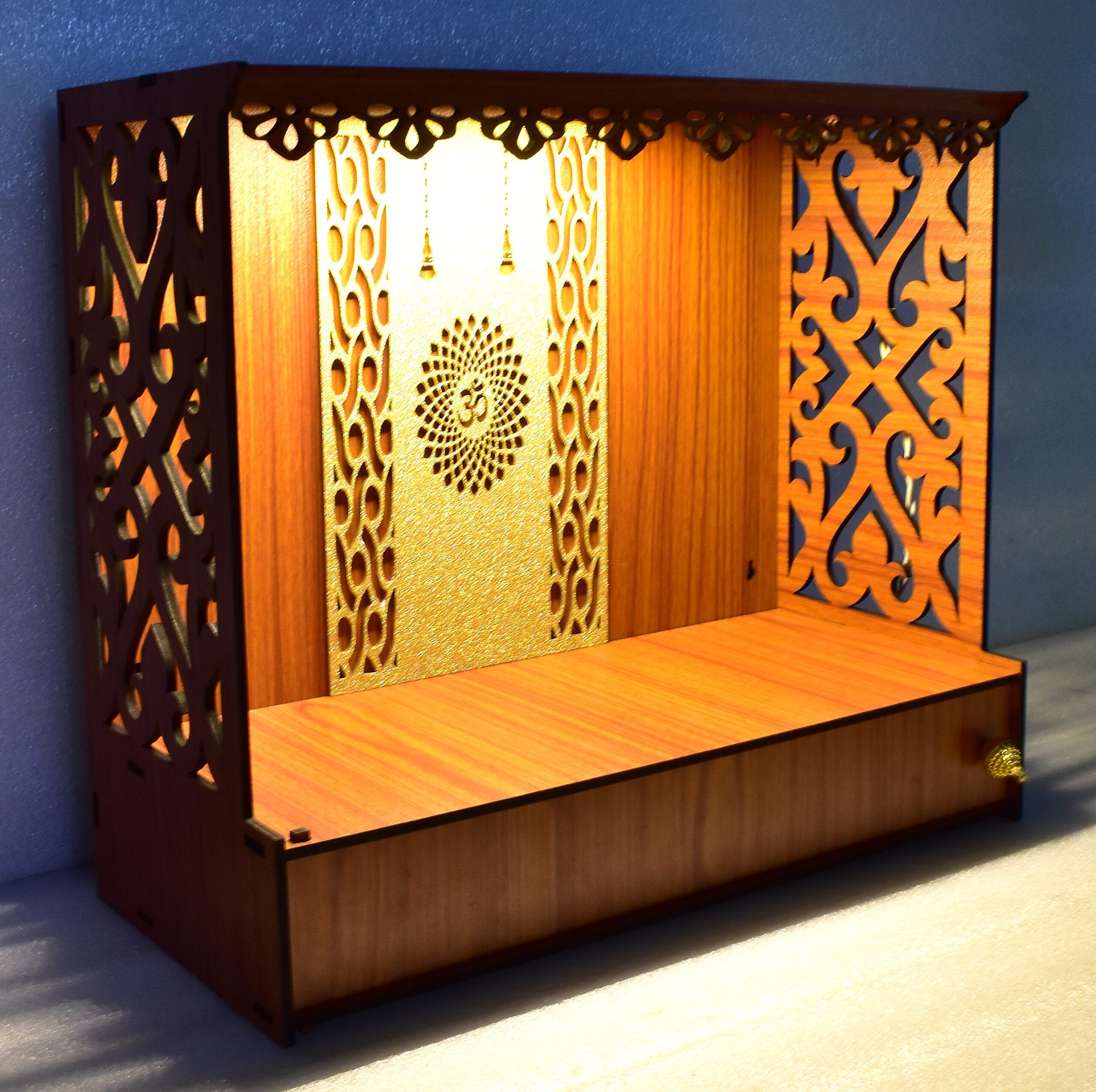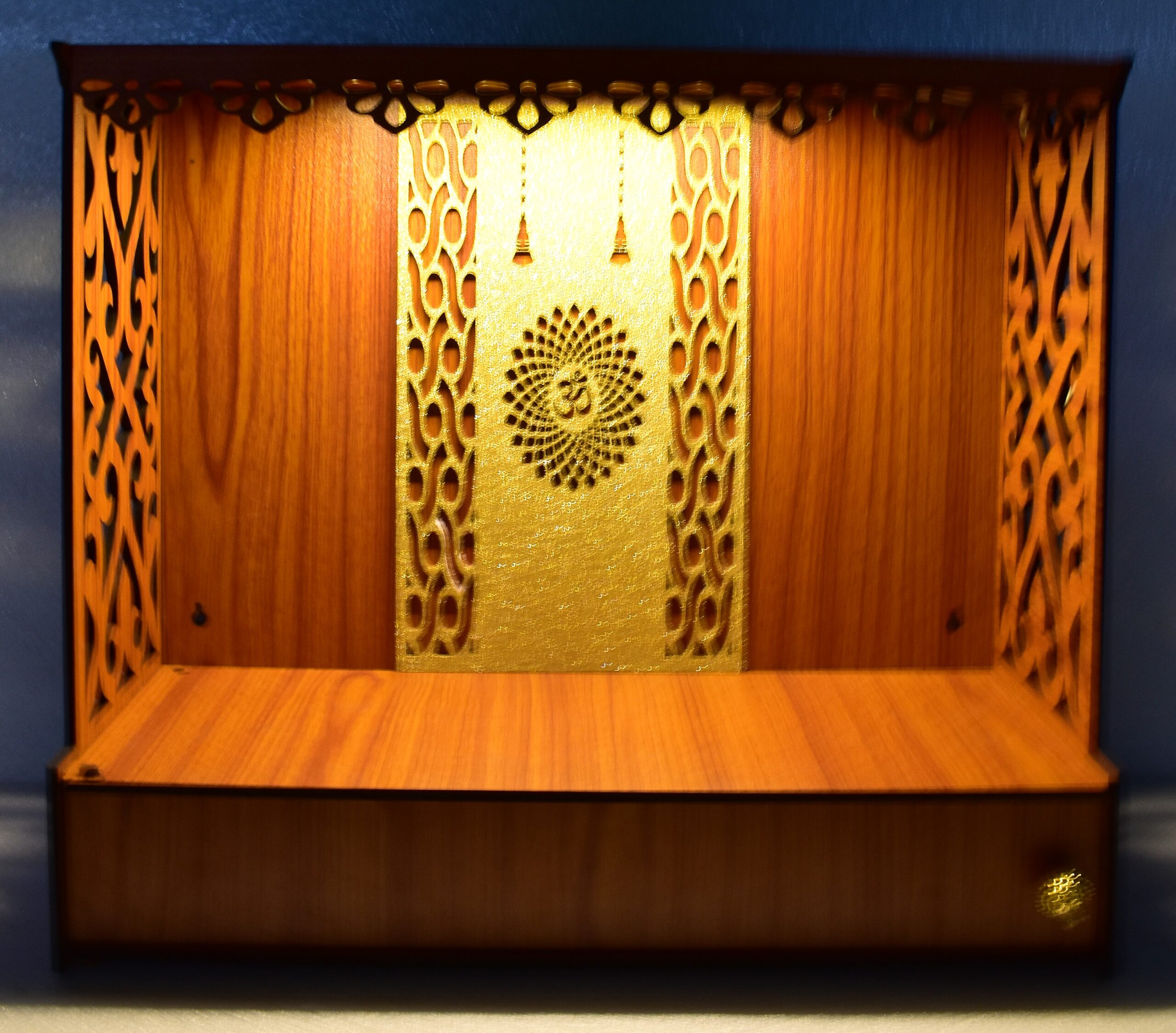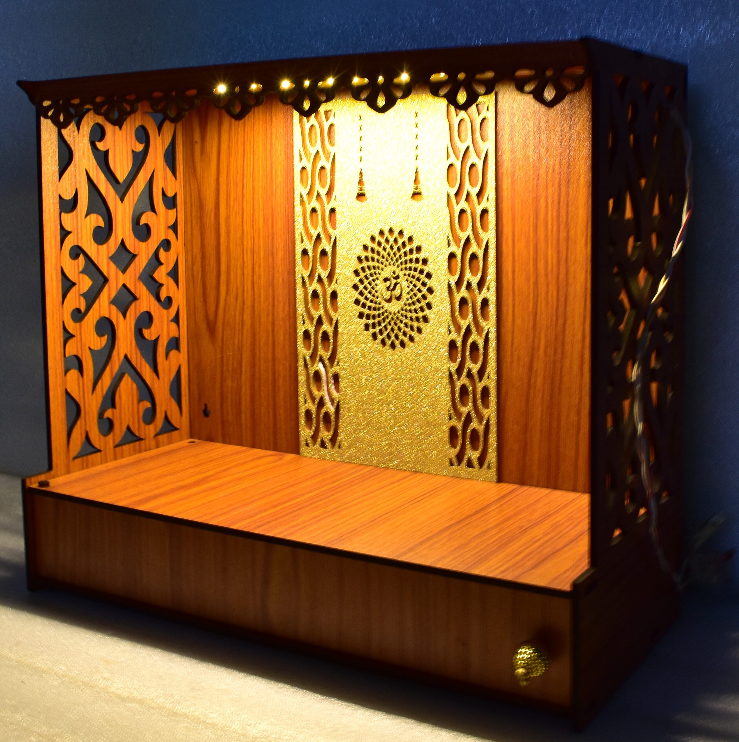 Heartily Shlok Beautiful Wooden Pooja Mandir for Home or Puja Temple Stand for Office and Shops with Led spot Light (H-13 , L-5, W -15 Inch)