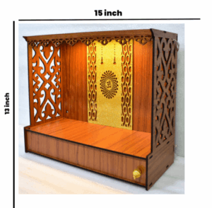 | (H-13 , L-5, W -15 Inch) | The Devshila Shlok Wooden Pooja Mandir is a stunning creation handcrafted by expert artisans of Sikha Art Craft. Made from high-quality seasoned wood, it is built to last while showcasing the richness of Indian craftsmanship. |