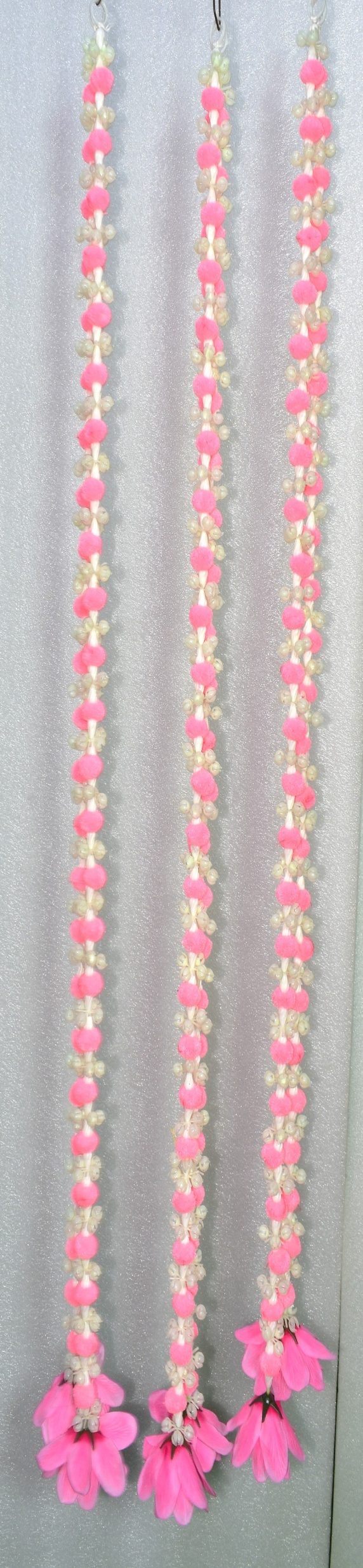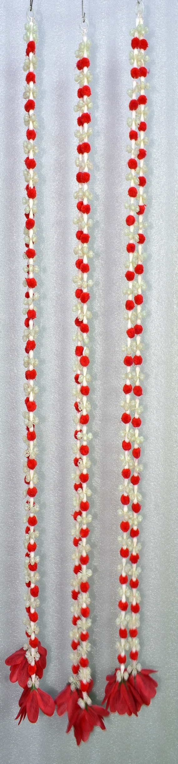 In Lariya Decoration, bright-colored cloths like red, yellow, pink, and green are arranged in spiral or layered patterns on ceilings, stages, and walls.